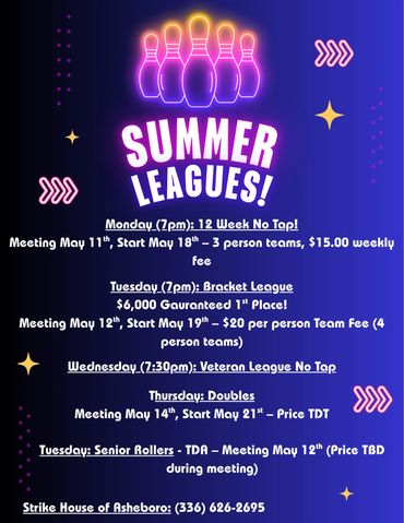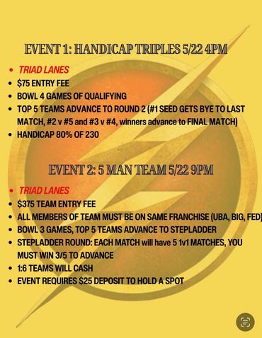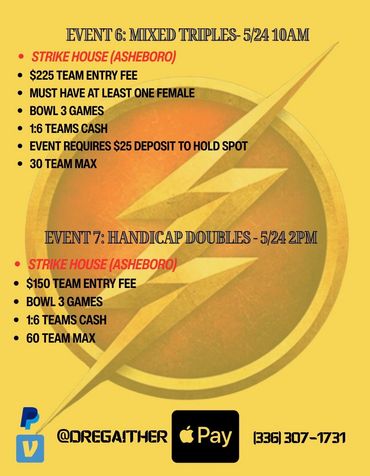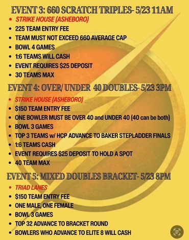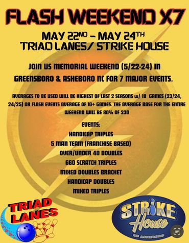 A Seven Part Series of Events paired with Triad Lanes for Memorial Weekend! Flyers & Info Above (Yellow Flyers)